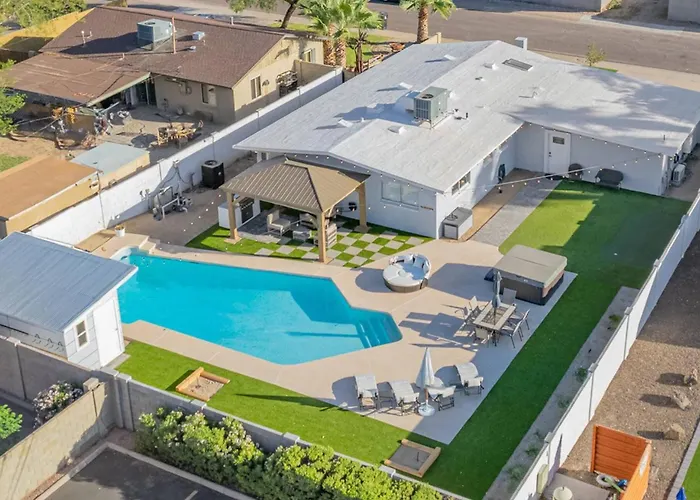 Questa villa si trova a circa 10 minuti in macchina dal Parco Evelyn Hallman e offre un facile accesso allo Scottsdale Stadium, che si trova a soli 650 metri. A 15 minuti in auto da questa casa vacanze gli ospiti troveranno Cholla Trailhead Camelback Mountain, mentre il Phoenician è a 3,1 km. La *4 Min 2 Nightlife*Huge Cabana Pool*Spa*Golf*Bbq è situata a una distanza di 6 km dallo Zoo di Phoenix, ideale per le famiglie.